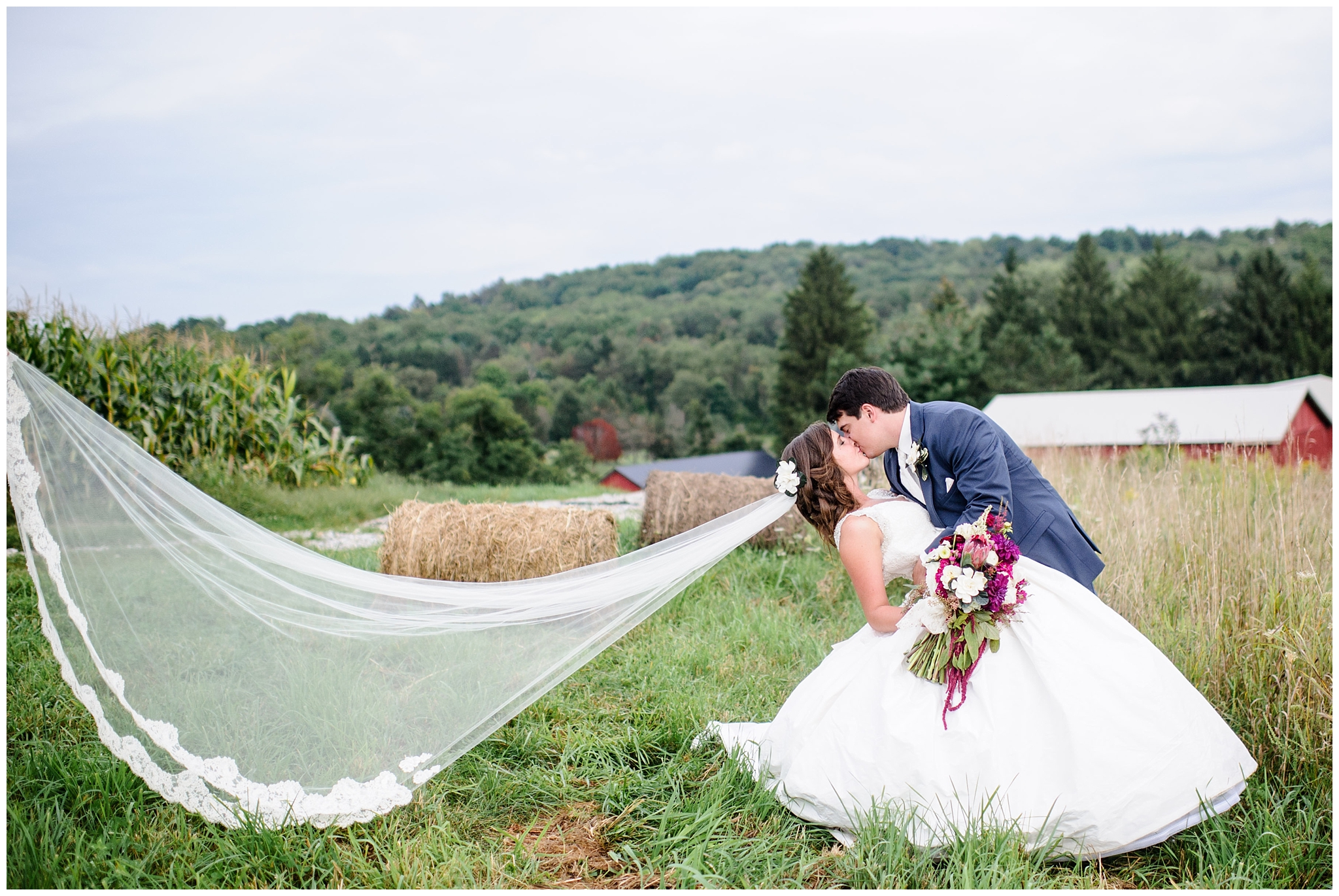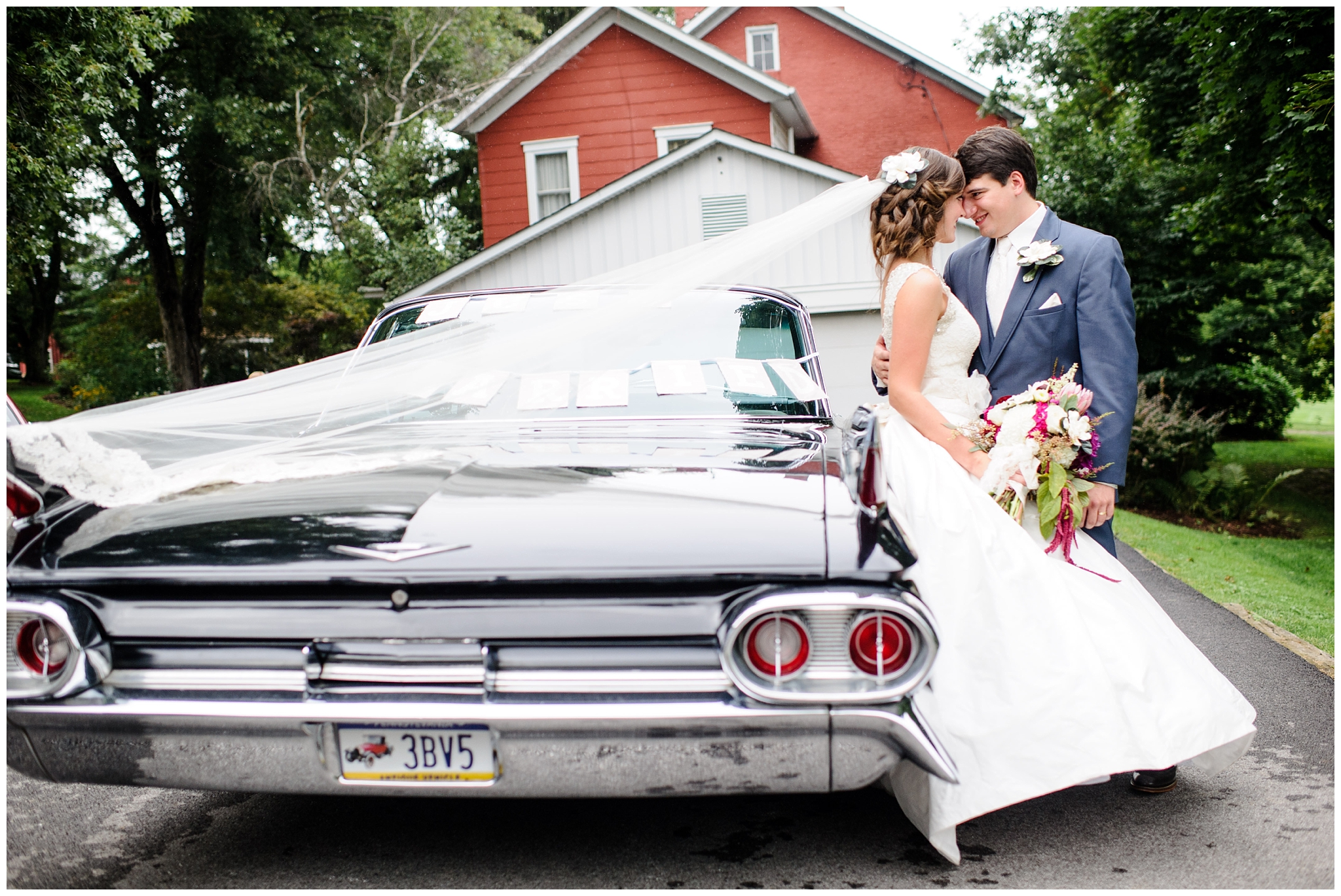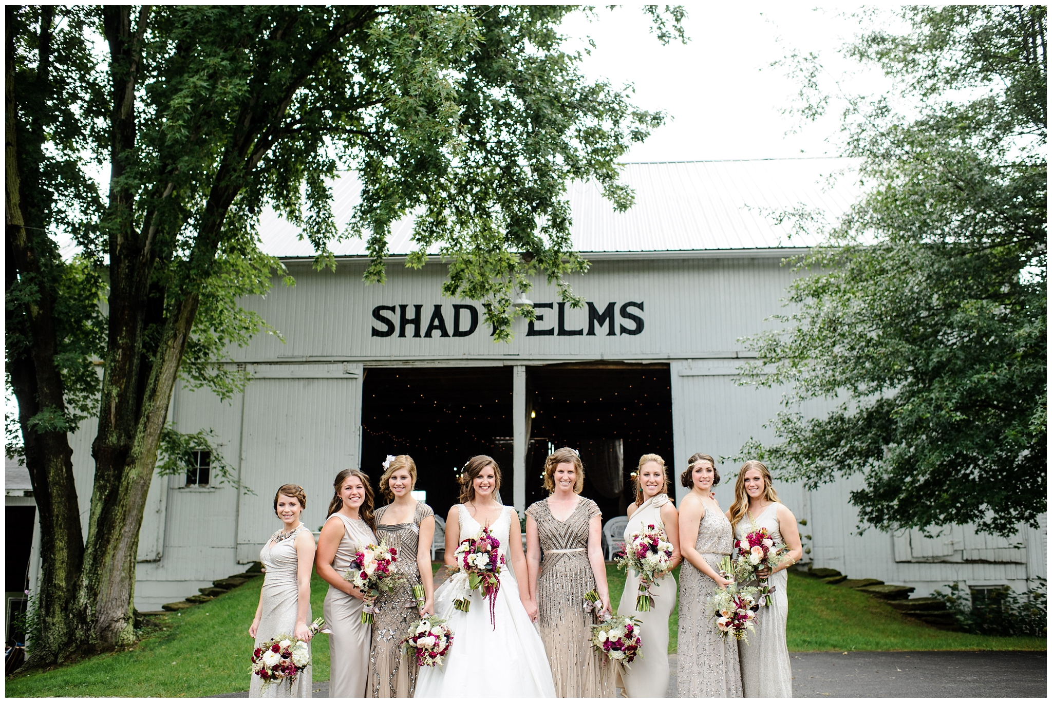This wedding was definitely extra special for us to be a part of. I’ve known both Abram and Melanie since we were kids, and Melanie is also the younger sister of a great friend of ours from our life group. It’s a small world, I’ll tell ya! And to top it all off, that same couple from our life group happens to be the ones who run Shady Elms Farm, so we knew this wedding was going to be extra fabulous, and that’s exactly what it was! It was calling for 80% chance of rain all week leading up to their big day, and while it did rain a good bit of the morning, we were blessed with a nice break in the afternoon, allowing us to get some fabulous portraits! And wait until you see these details! You won’t miss them because there are a gazillion of them…from vintage books and an antique car to a vinyl record guestbook, an abundance of gorgeous flowers and a whole lot more! Sit back and enjoy because this post is a long one!